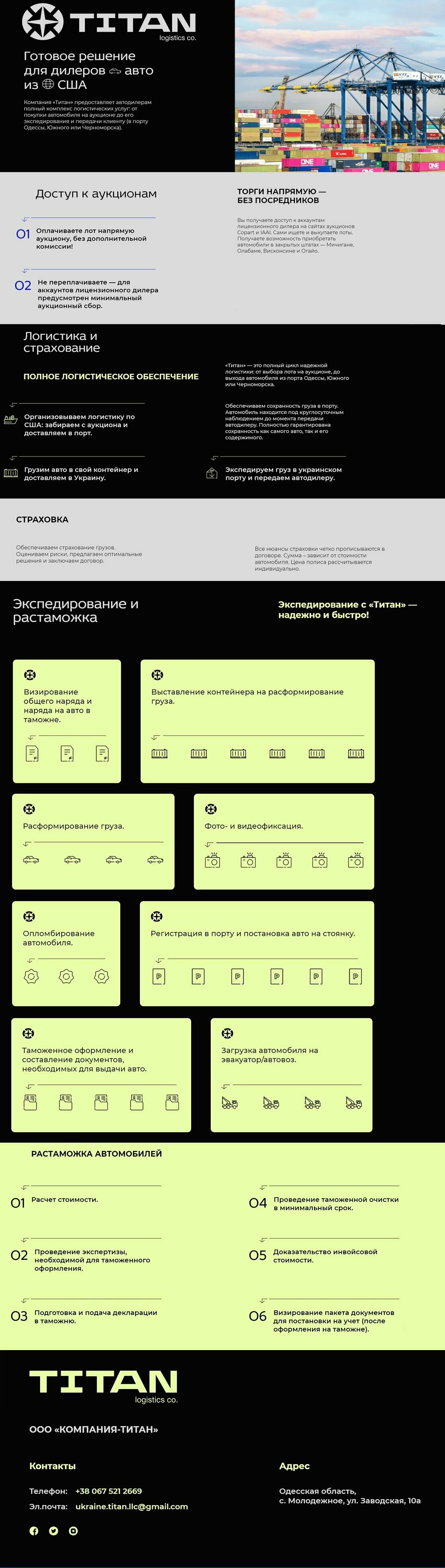 "Титан" - це повний цикл надійної логістики: від вибору лоту на аукціоні, до виходу автомобіля з порту Одеси, Південного чи Чорноморська.