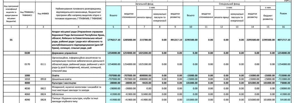 А така частина додатку до бюджетного проекту викликає ще більш питань. Особливо дивують суми коштів зі знаком «мінус». Тобто кармани місцевих можновладців важливіші за дітей, культуру, дороги та взагалі мешканців міста.